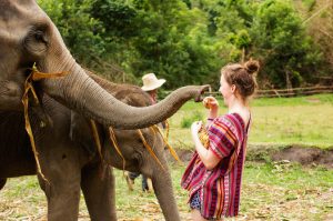 A full-day Elephant Jungle Sanctuary package offers visitors the opportunity to get to know each of the remarkable elephants and gain a special understanding of their daily lives and behaviors. You will have experience life with the elephants in their natural home, a freely roamed environment which is both safe and sustainable. Located beside a Karen village in a densely forested mountainous region, the Sanctuary is surrounded by spectacular jungle scenery. You will be picked up from your place of accommodation in the morning, and travel around 1.5 hours from Chiang Mai to the Karen village and Sanctuary. Breathe clear mountain air as you drive through the beautiful agricultural countryside of Northern Thailand, and get a glimpse of local life outside of the city. When you arrive at the Elephant Jungle Sanctuary, an English-speaking guide will walk with you through the adjacent Karen village, and teach you a little about elephants and the local way of life. Get changed into traditional Karen clothing, listen as your guide tells you more about the Sanctuary, grab some bananas and sugar cane for feeding, and you will be ready to meet the elephants!